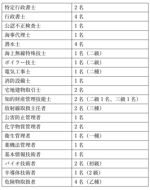 行政書士/海事代理士/潜水士/知的財産管理技能士/宅地建物取引士